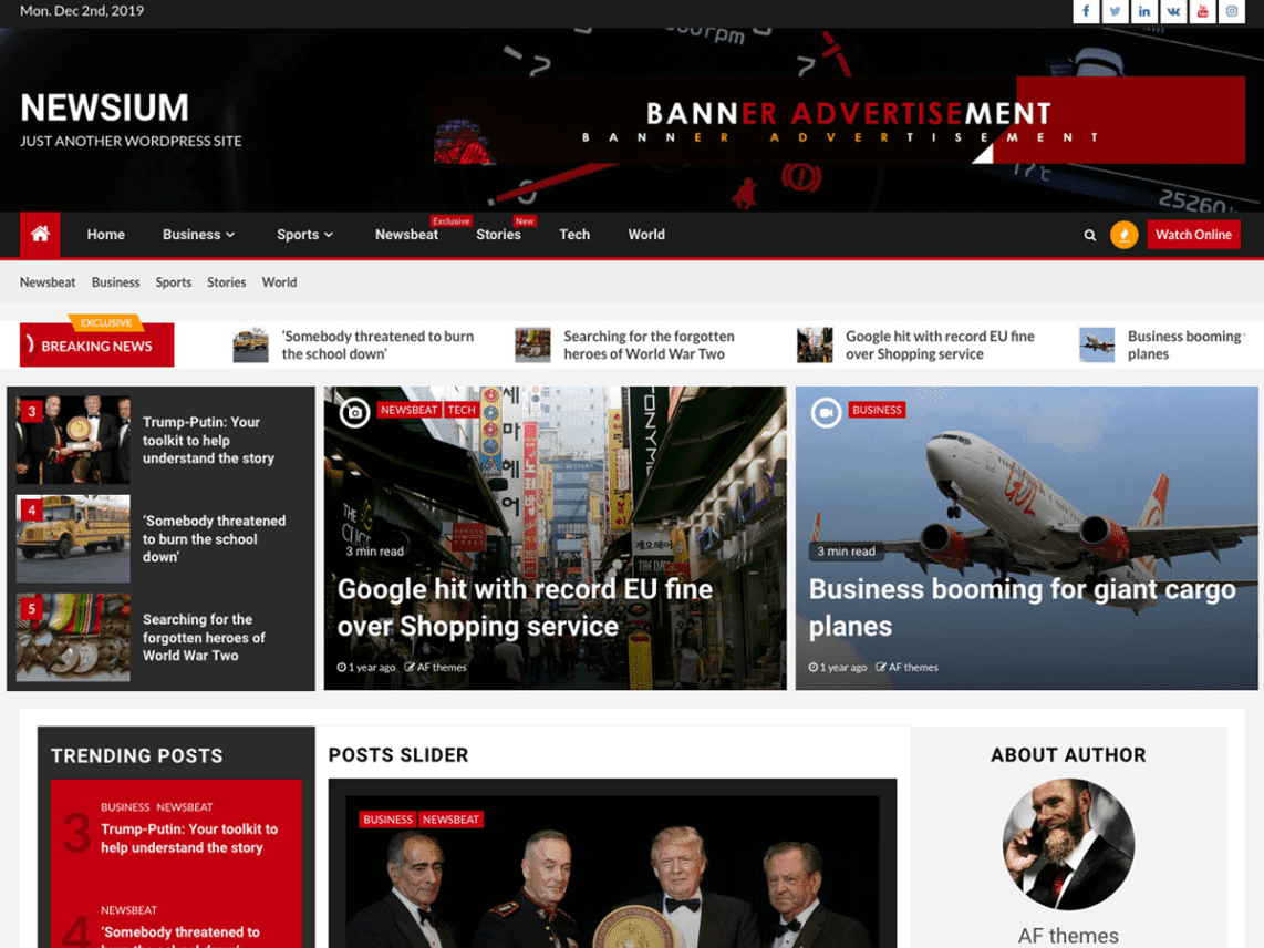 Newsium  बहुत आसान एवं सर्वश्रेठ वर्डप्रेस फ्री थीम है इस थीम को किसी न्यूज़ वाली वेबसाइट पर आप लगा सकते है ये थीम आपको आसान लेख और ब्लॉग पोस्ट करने की अनुमति देती है ये एक बेहतरीन समाचार वेबसाइट बनाने के लिए लाइव कस्टमाइज़र विकल्प और कस्टम विजेट का उपयोग करके आप अपनी वेबसाइट को अपनी पसंद के अनुसार डिज़ाइन कर सकते हैं