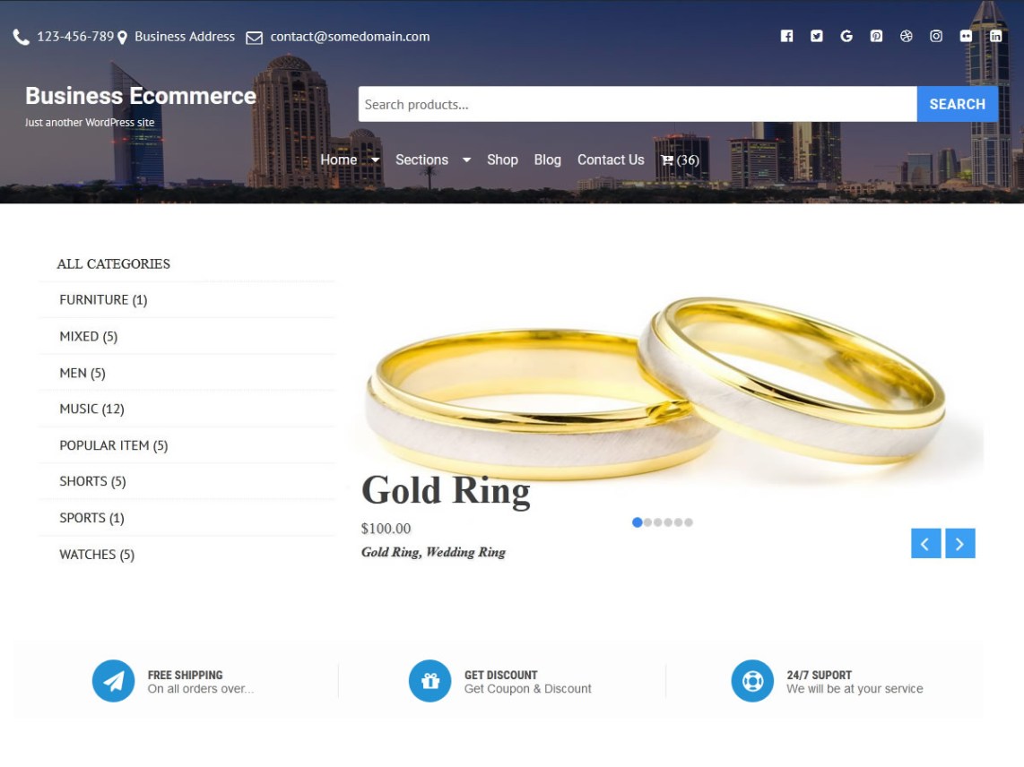 Business Ecommerce  ये एक बुसिनेस साइट के लिए बेस्ट फ्री वर्डप्रेस थीम है इस थीम को किसी बिज़नेस से जुडी साइट पर आप अप्लाई करके अपने तरीके से आप डिज़ाइन कर सकते है इस थीम को आप फुल्ली एडिट करके आप डिज़ाइन कर सकते है